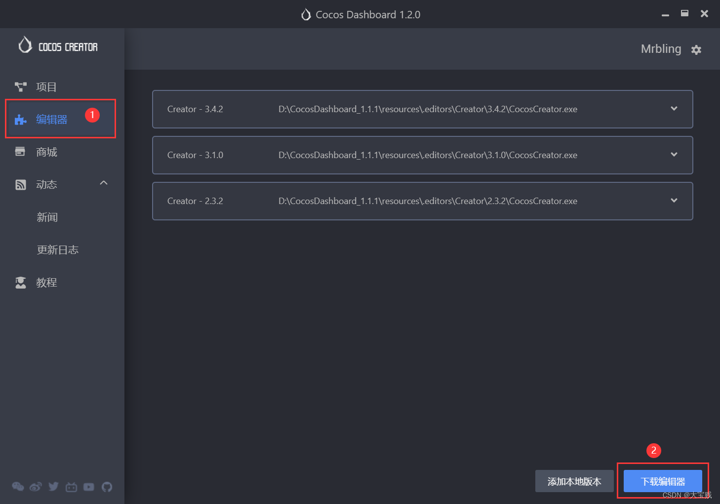 安装好DashBoard后,启动DashBoard:在“编辑器”菜单中,下载对应的编辑器版本: