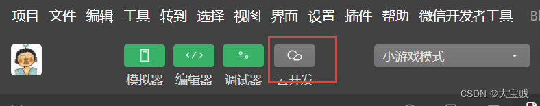 这篇接着实现玩家战绩统计功能,使用了微信云数据库(主要是图方便和便宜)。微信云数据库本质上来说算是MongoDB数据库,是一种非关系型数据库。打开微信开发者工具,登陆以后点击云开发: